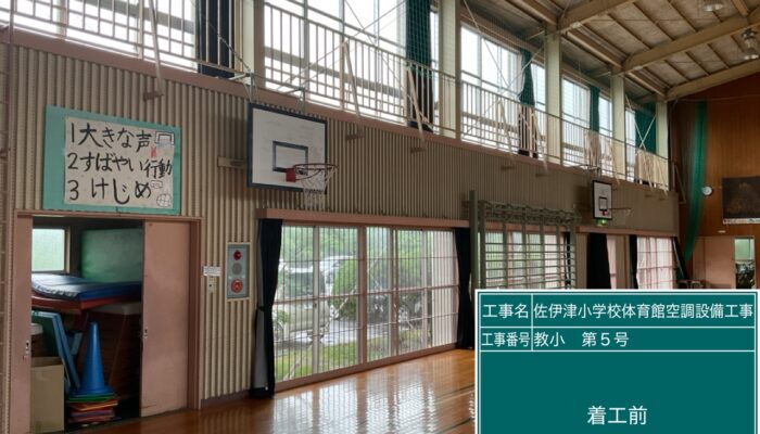 学校と行事予定と工事予定の打合せを綿密に行い、体育館の使用に支障が出ないようにしました。また、作業区画の設置、標識を行い、作業中・作業後の立ち入りができないように安全確保を行いました。