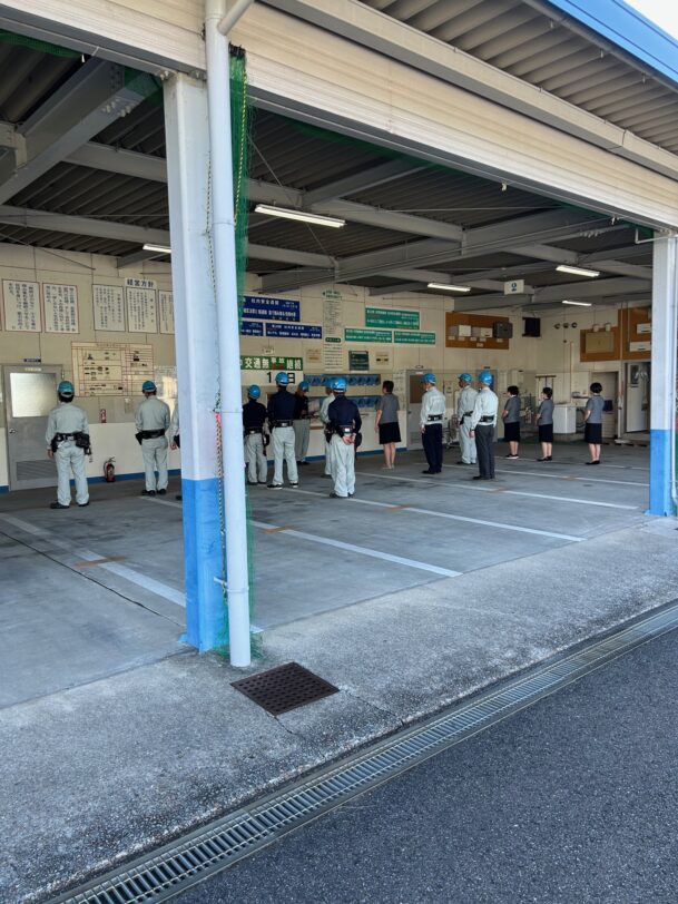 本社車庫にて、ラジオ体操を行い10月の安全朝礼を実施しました。