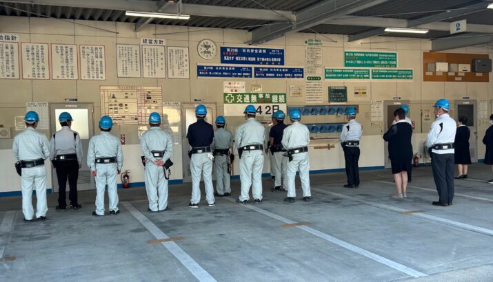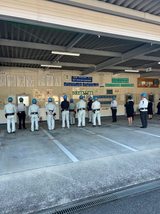 本社車庫にて、ラジオ体操を行い11月の安全朝礼を実施しました。