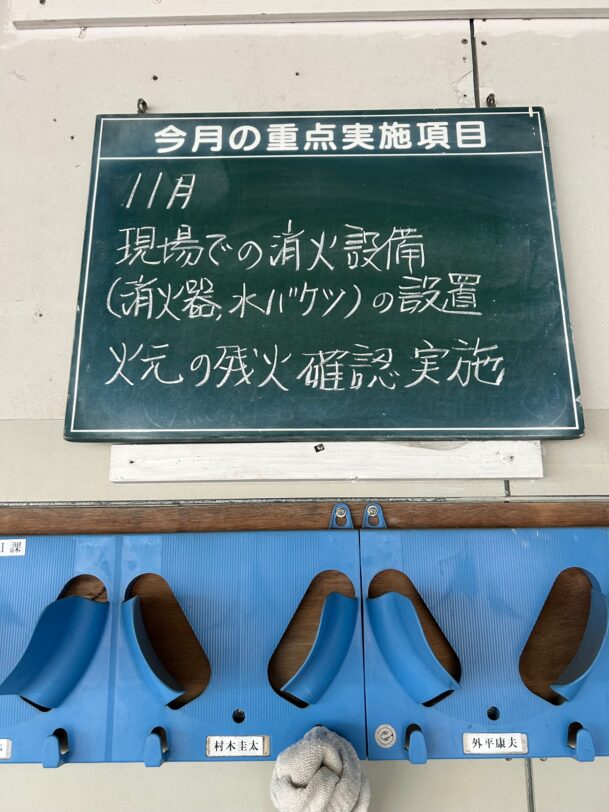 ⑧ 今月の重点実施項目「現場での消火設備(消火器、水バケツ)の設置、火元の残火確認実施」