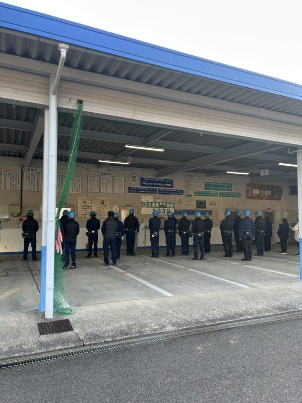 本社車庫にて、ラジオ体操を行い1月の安全朝礼を実施しました。