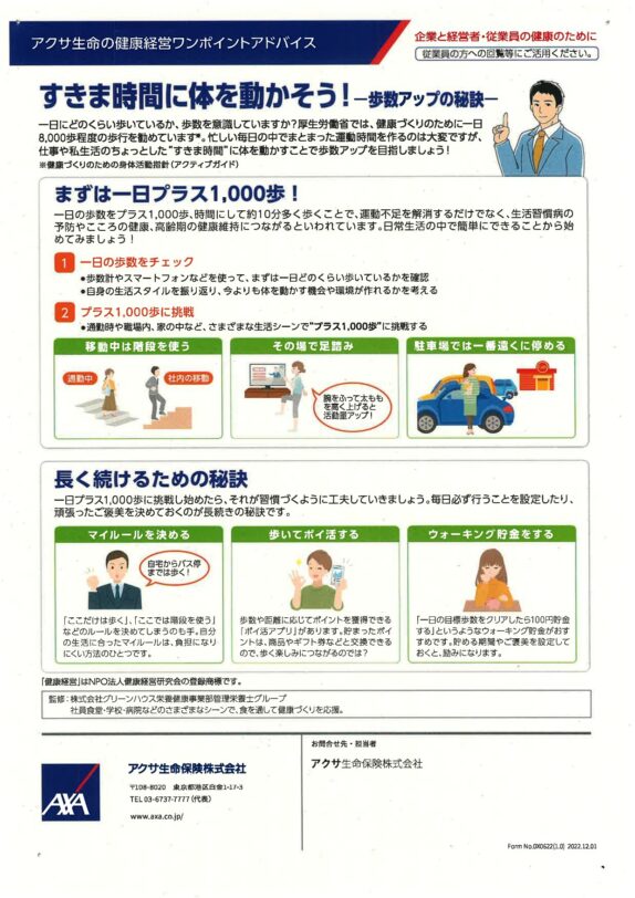 現在、歩数計のアプリ「元気アップくまもと」を社員に活用してもらい、毎月発行している