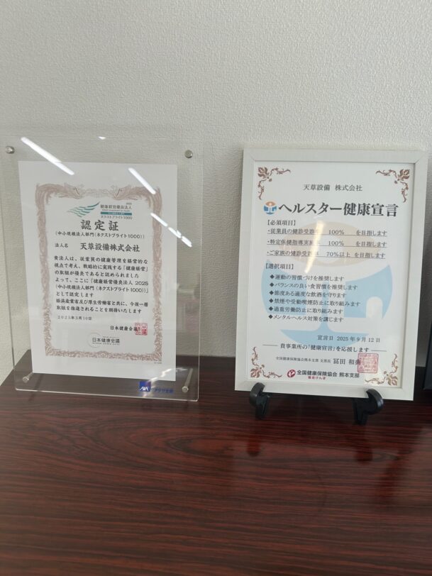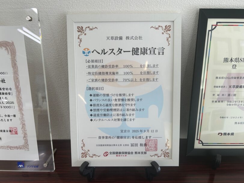 協会けんぽ熊本支部より、「ヘルスター健康宣言証」が届きました。